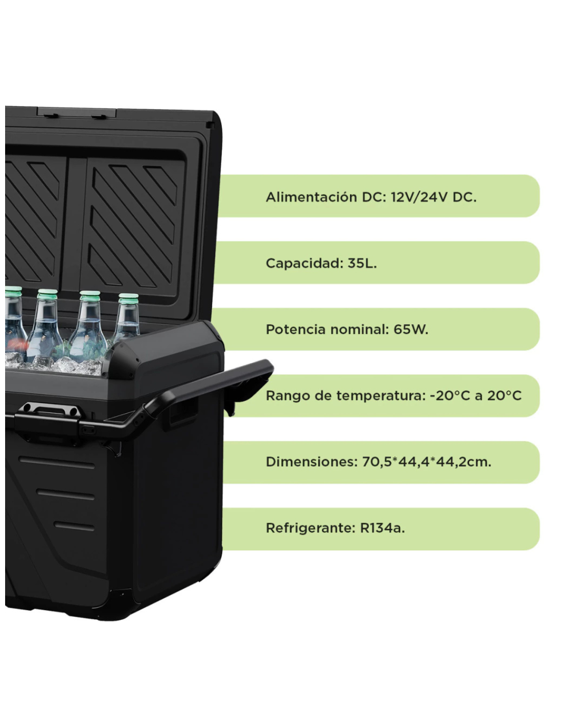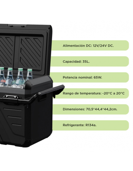 Heladera portátil Terra Outdoors 35L – Versatilidad y comodidad en cada viaje Descubrí la heladera portátil Terra Outdoors con capacidad de 35 litros, diseñada para mantener tus alimentos y bebidas frescos o congelados en cualquier aventura. Ideal para el auto, camping o escapadas al aire libre en Argentina. Características principales: Capacidad y tamaño ideal: 35 litros con dimensiones compactas de 70,5×44,4×44,2 cm, perfecta para transportar sin complicaciones. Alimentación flexible: funciona con corriente DC 12/24V para vehículos y cable de 220V para el hogar o cabañas, todo incluido. Rango de temperatura amplio: ajustá la temperatura desde -20°C (freezer real) hasta 20°C para conservar alimentos y bebidas justo como los necesitás. Display digital: controlá y monitoreá la temperatura con precisión gracias a su panel digital intuitivo. Bajo consumo: potencia de solo 65W, eficiente y económica. Refrigerante ecológico: utiliza R134a, respetuoso con el medio ambiente. Movilidad mejorada: equipada con ruedas resistentes y manija retráctil para facilitar su traslado. Diseño funcional: tapa con posavasos incorporados para mayor comodidad. Funciones destacadas: Enfría y congela con control grado a grado, adaptándose a tus necesidades. Compatible con diferentes fuentes de alimentación sin necesidad de adaptadores adicionales. Panel digital para configurar la temperatura y verificar el rendimiento en tiempo real. ¿Por qué elegir la Terra Outdoors? Portabilidad total: su sistema de ruedas y manija regulable facilita llevarla a cualquier lugar. Versatilidad única: se adapta a múltiples usos, desde heladera hasta freezer. Lista para usar: incluye cables para auto y hogar, lista para acompañarte en tus viajes. Ideal para múltiples actividades: camping, pesca, playa, rutas largas o en caso de cortes de luz. Con la heladera portátil Terra Outdoors, disfrutá de la mejor conservación de tus alimentos y bebidas en cada salida. ¡Llevá confort y practicidad a donde vayas! ¡Comprala ahora y convertí cada viaje en una experiencia fresca y cómoda!